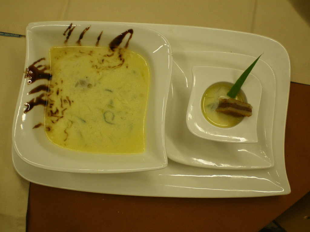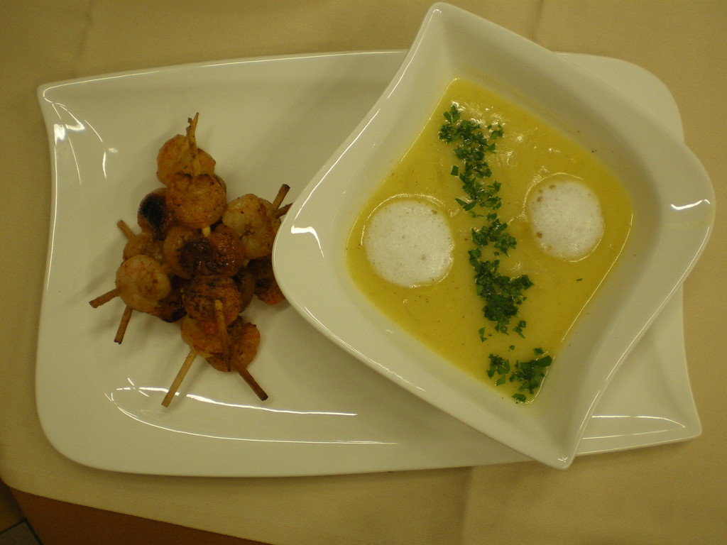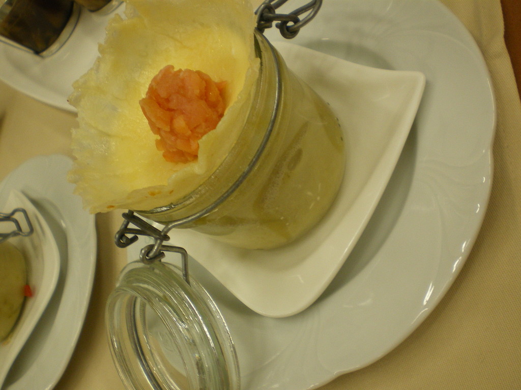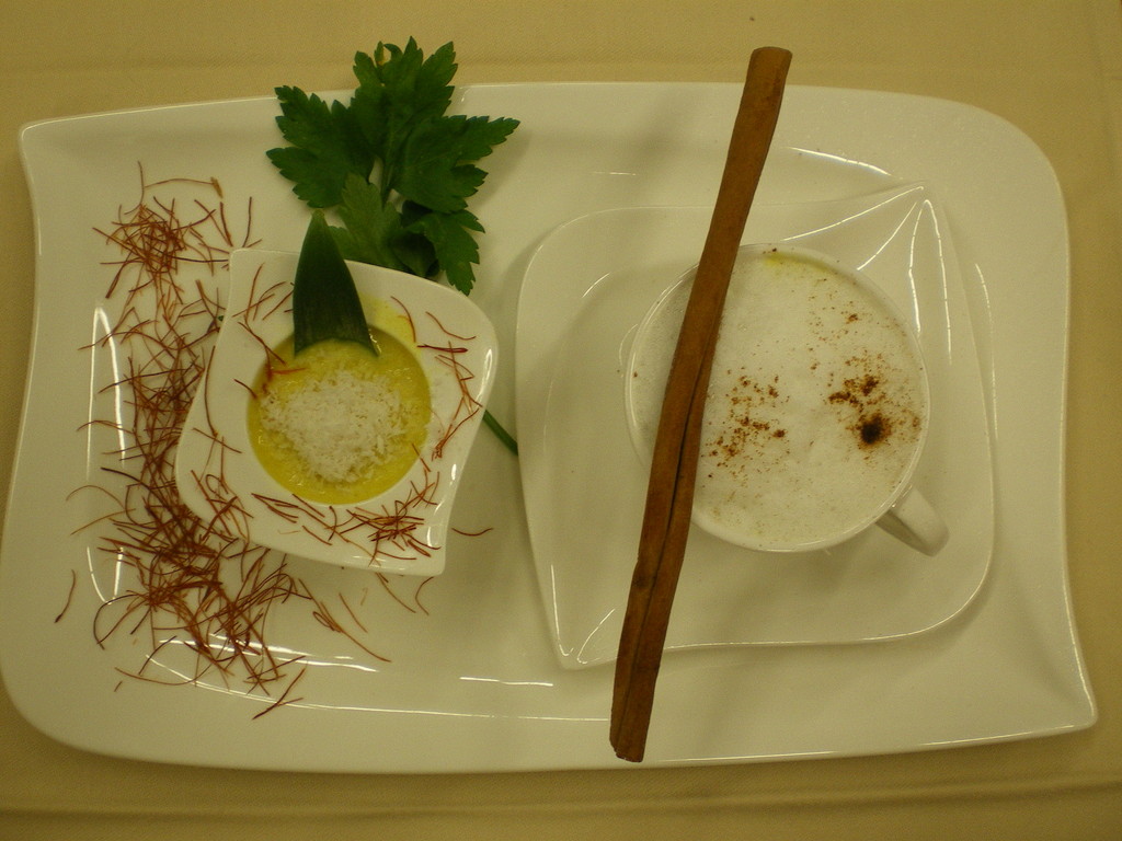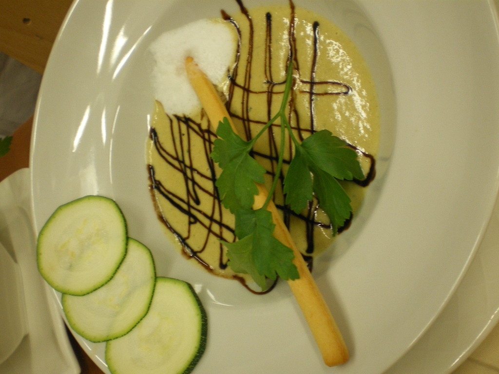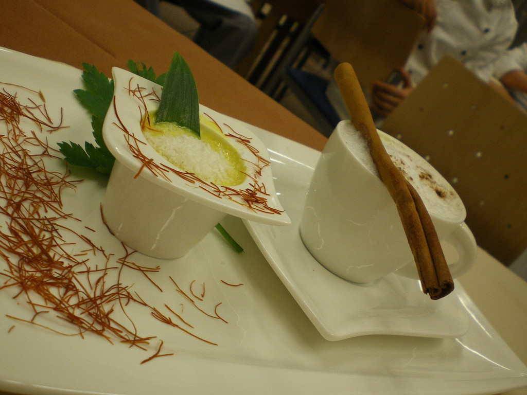 Schüler/innenkommentar: Unser Fachlehrer Herr Osl unterstützte uns mit seinem Fachwissen und zeigte uns verschiedene Anrichtearten auf Hauben-Niveau. Uns wurde gezeigt wie man Vorspeisen und Suppen zubereitet und kreativ anrichtet. Die Speisen reichten von heimischen bis zu internationalen Spezialitäten. Wir Schüler hatten sehr viel Spaß und sammelten auch einige Ideen die wir auch in den Betrieben umsetzen können. Wir bedanken uns herzlich bei unserem Direktor Wilhelm Raggl und natürlich beim Kochlehrer Herbert Osl.