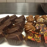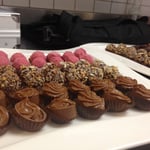Die fleißigen Lehrlinge bereiteten eine große Auswahl an zauberhaften Pralinen zu. Mit Hilfe von Herrn Haag und seines Sohnes Christoph war dies nicht all zu schwer.