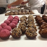 Angefangen mit etwas klassischem: die Nougat Praline! Ob helles oder dunkles Nougat, Haselnuss oder Mandel, Herzform oder Kugel Pralinen, alles war vertreten und den Kreationen waren keine Grenzen gesetzt.